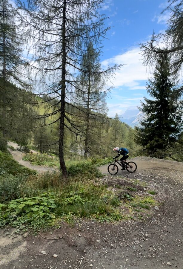 Schon ziemlich am Ende mit unseren Kräften aber noch motiviert, beschlossen wir dann zum Abschluss noch einmal den blauen Trail, der uns wirklich begeistert hat, zu racen. Man merkt, wie man immer sicherer wird und an einigen Stellen weniger bremst und das Bike einfach mal laufen lässt.