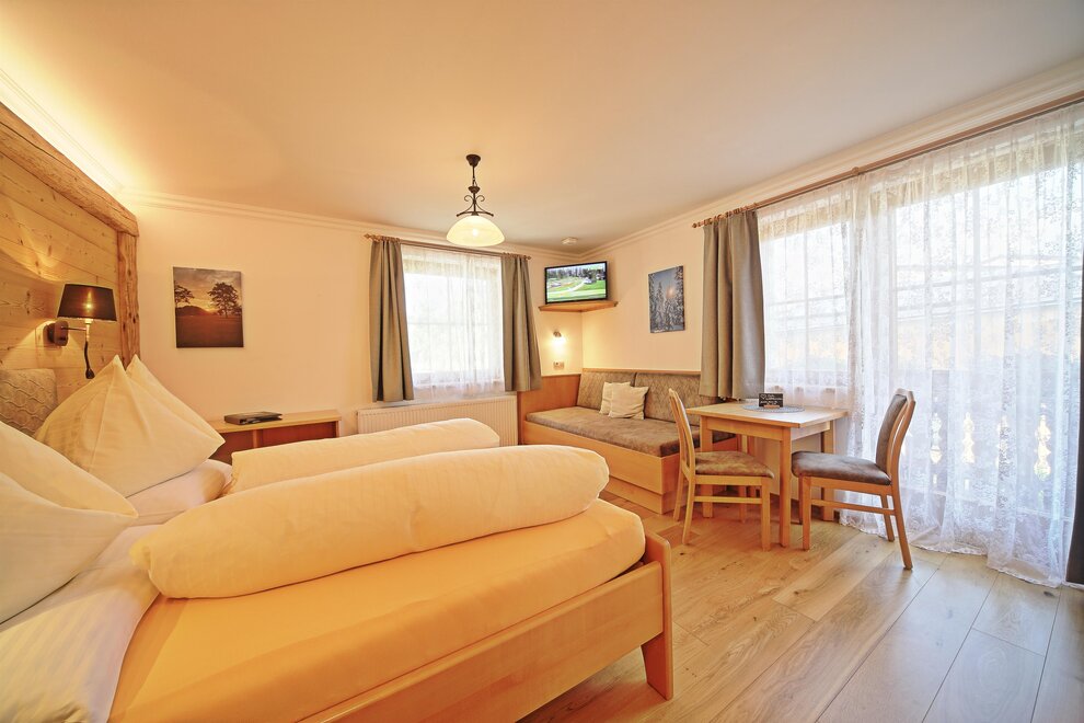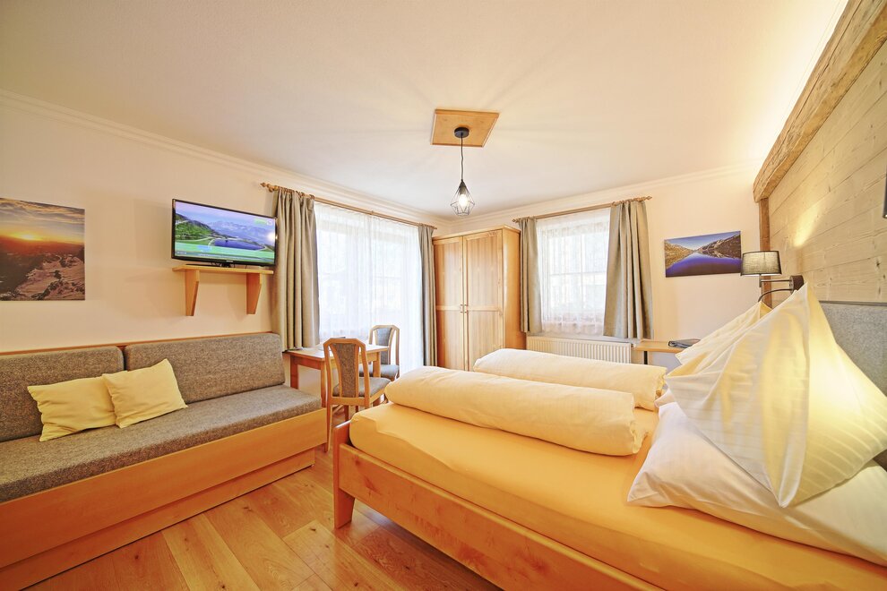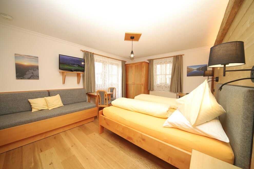 Komfortní třílůžkový pokoj s sprchou a WC, balkonem, kabelovou plochou, rádiem, trezorem a bezplatným W-LAN.