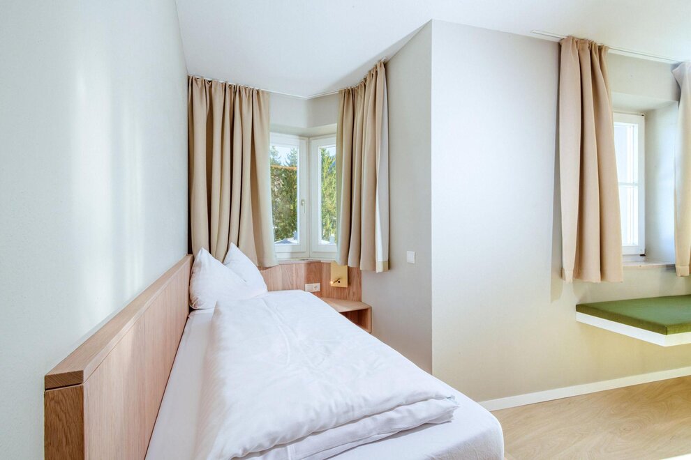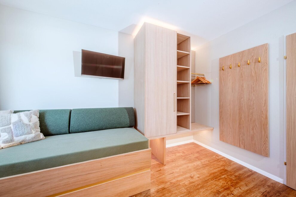 Accommodation for one person: One-room apartment with an entrance area, located in the basement. Living/sleeping area with a single bed, kitchenette, shower/WC, safe, hairdryer, cable TV, and telephone.