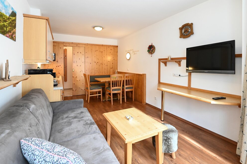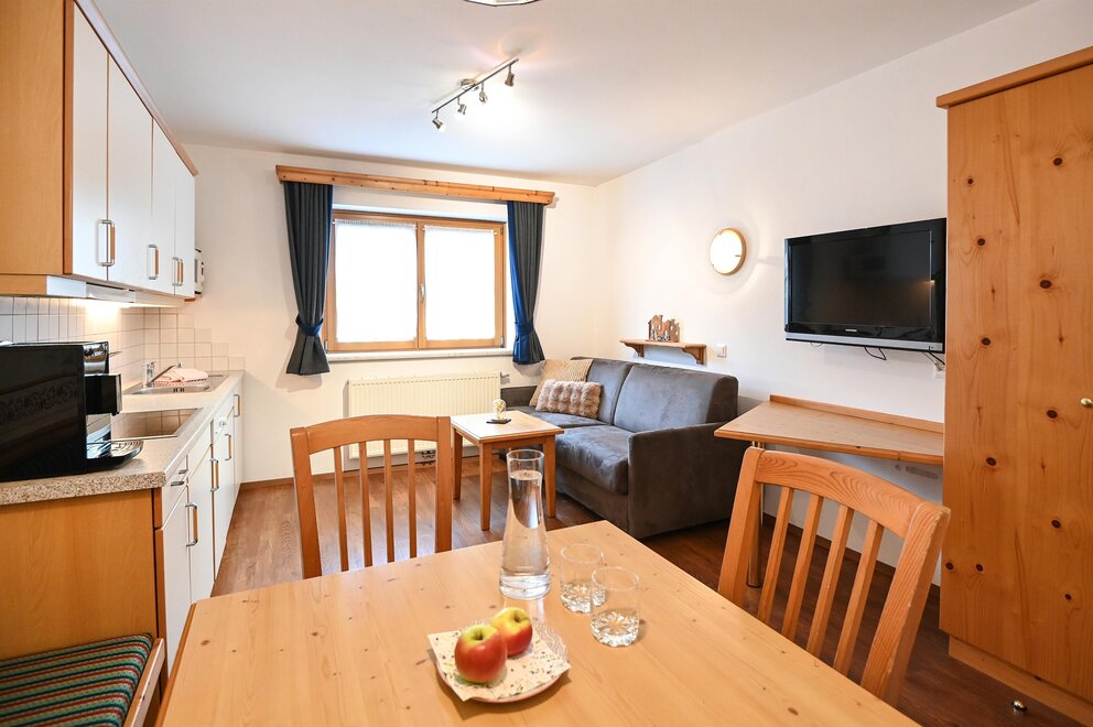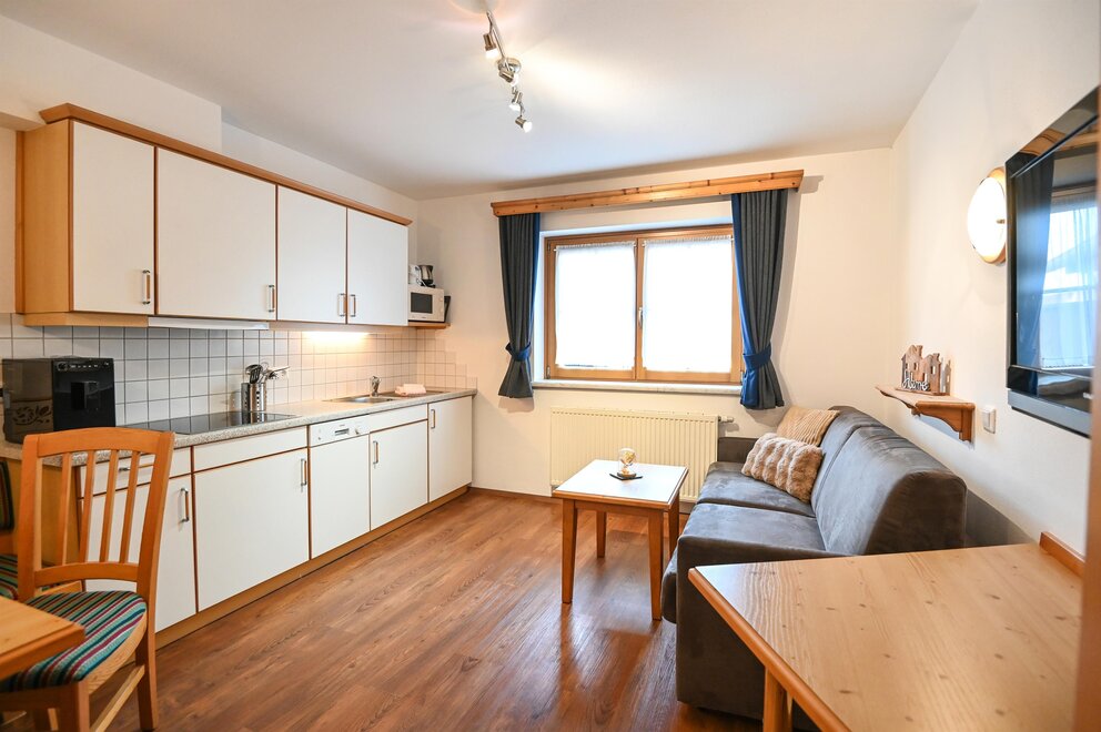 Naše 2-pokojový apartmán je útulně a komfortně zařízený. Obývací kuchyně s jídelním koutem, satelitní TV a rozkládací dvěma pohovkami je plně vybavená včetně myčky na nádobí. Dále je apartmán vybaven krásnou dvojlůžkovou ložnicí, samostatným sprchovým koutem/WC a předsíní. Velikost bytu: cca 40 m²