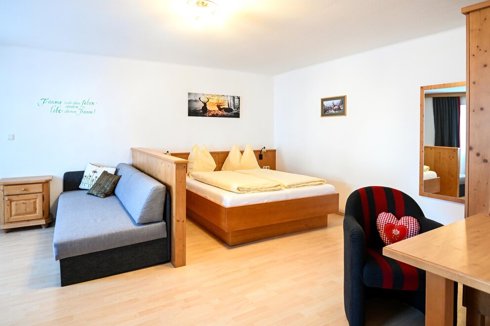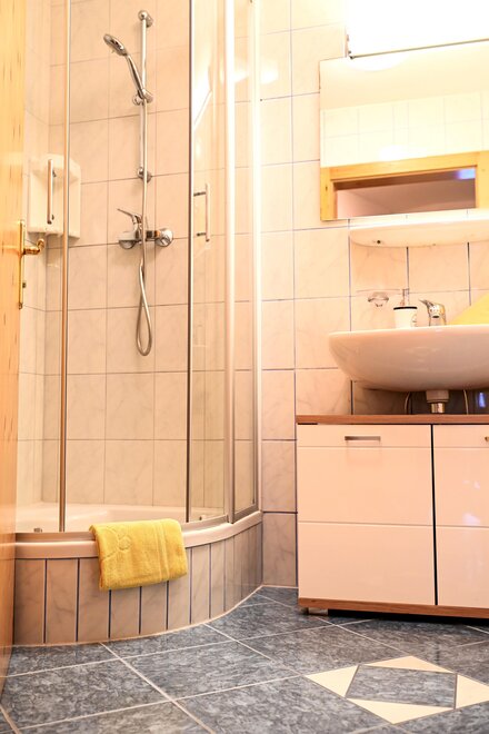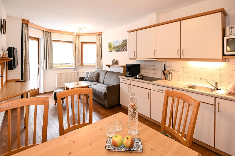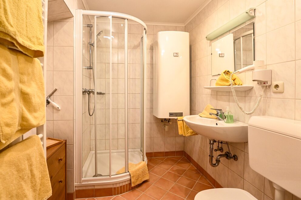 Náš 3-pokojový apartmán pro 2-6 osob je útulně a komfortně zařízen. Kromě manželské ložnice je zde také ložnice s patrovými postelemi. Pro 2 osoby je v obývací kuchyni k dispozici rozkládací pohovka. Velká obývací kuchyně je velmi komfortně vybavena (s myčkou nádobí, mikrovlnnou troubou, rychlovarnou konvicí, nádobím, sklenicemi ...), sprcha/toaleta odděleně, 2. toaleta, předsíň, velikost bytu: cca 70 m