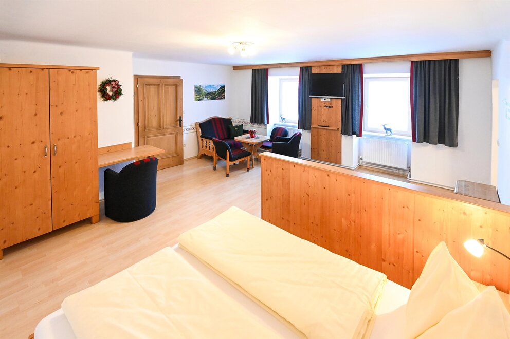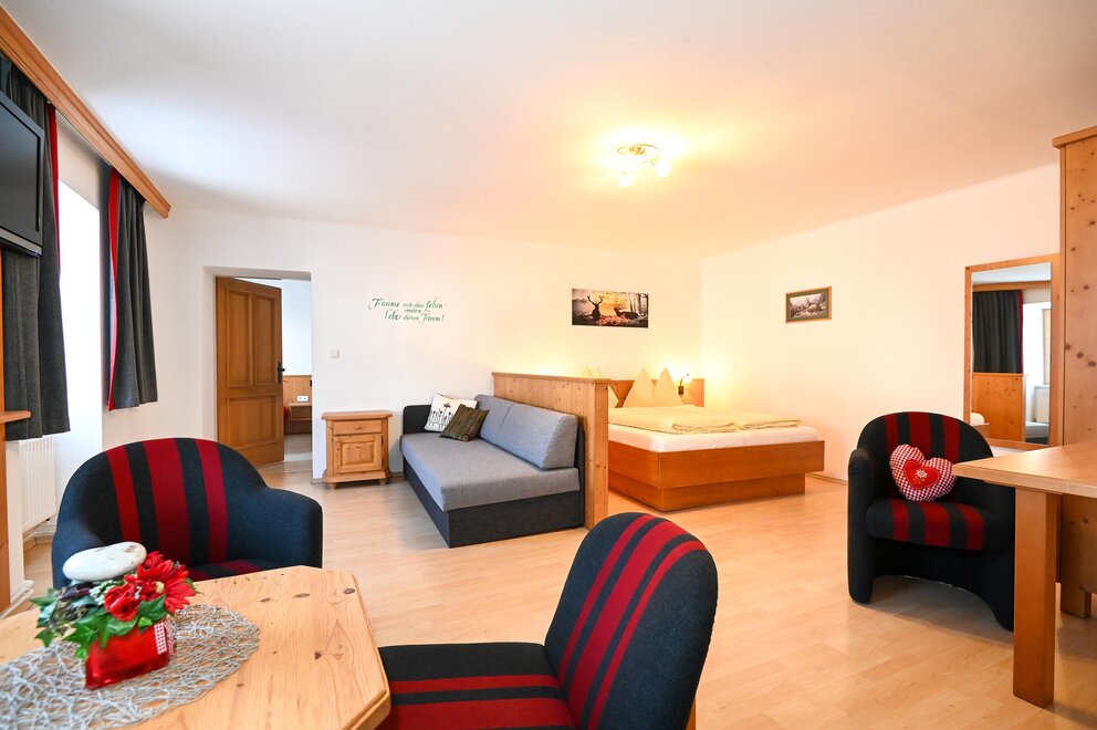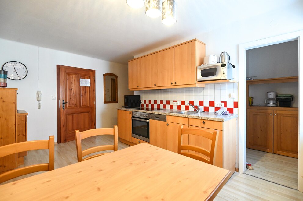 Náš 3pokojový apartmán pro 2-5 osob je útulně a komfortně zařízen. Kromě 2 ložnic je zde plně vybavená kuchyň se sporákem a jídelním koutem, obývací pokoj, sprcha/WC odděleně, předsíň, velikost bytu: cca 70 m