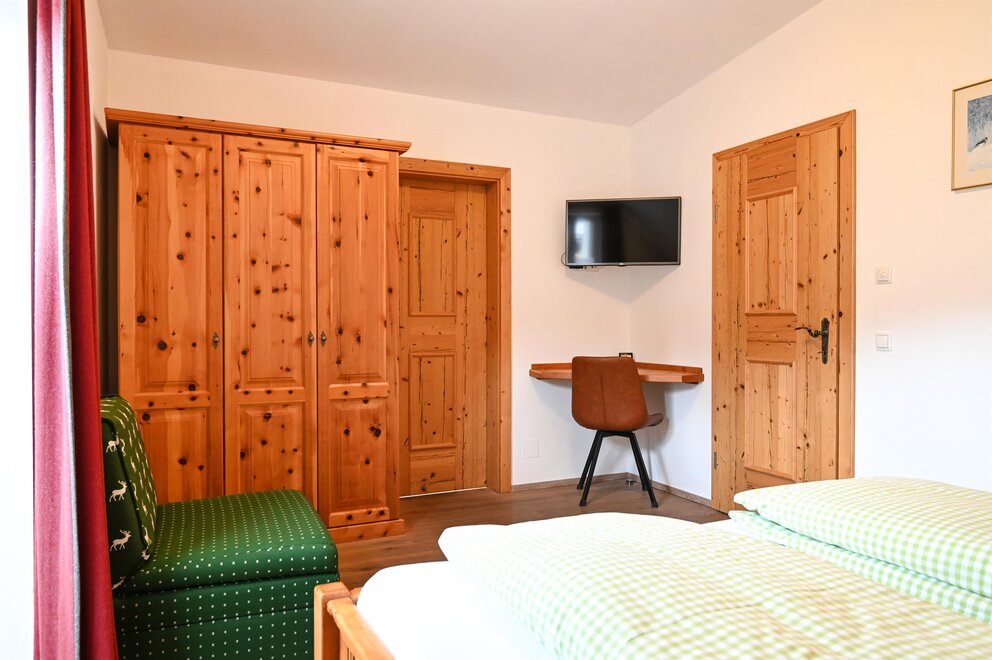 1 x dřevěná ložnice se samostatnými postelemi a jedním přistýlkou pro 3. osobu a vlastní sprchou a WC a plochou televizí.Vybavení pokojů
