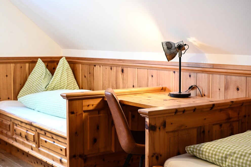 Patro: 2 x dřevěné dvojlůžkové ložnice s jedním přistýlkou a vlastní sprchou a WC a plochou televizí.