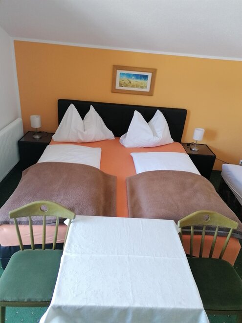 Náš třípokojový apartmán s 65 m² disponuje obývacím pokojem s kuchyňským koutem, manželskou ložnicí, třílůžkovou ložnicí, 2 sprchami, samostatným WC, společenskou místností se jídelním koutem a satelitní televizí a je vhodný pro 5 osob.