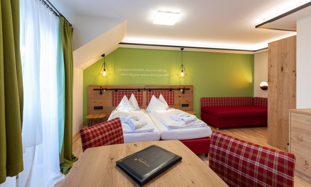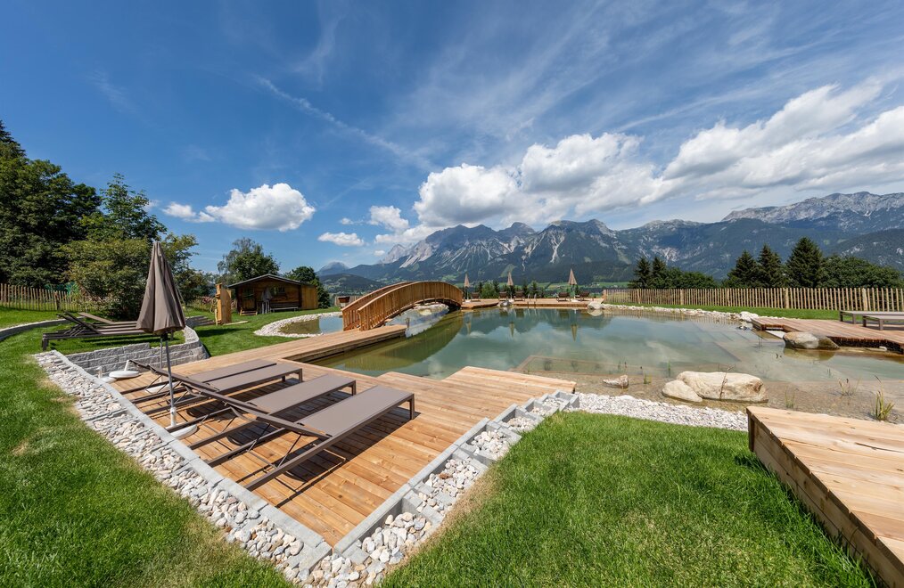 Vybavení pro relaxaci: bohatý bufet s snídaněmi, bufet se saláty, výběr z 4-chodového menu, tematické večery. Wellness zóna s saunovým světem, hotelovým přírodním koupacím rybníkem, velké dětské hřiště. Zvířata jako kočky, králíci, slepice, ovce, osli a koně... mají na našem zážitkovém statku svůj domov. Rodinné túry, jízda na našich haflingech a ponících a mnoho nabídek Schladming-Dachstein letní karty dělá vaši dovolenou nezapomenutelným zážitkem!