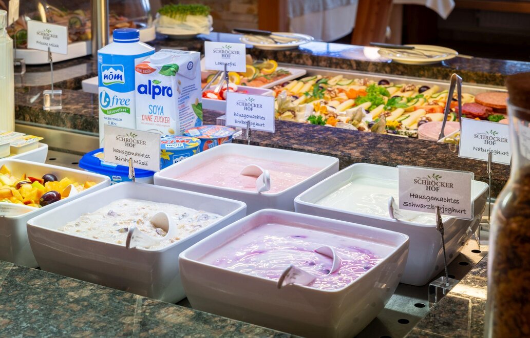 Schröckerhof breakfast buffet with a big selection and freshly-prepared egg dishes - a beautiful start to your day. We are happy to set your breakfast table on our sunny terrace!