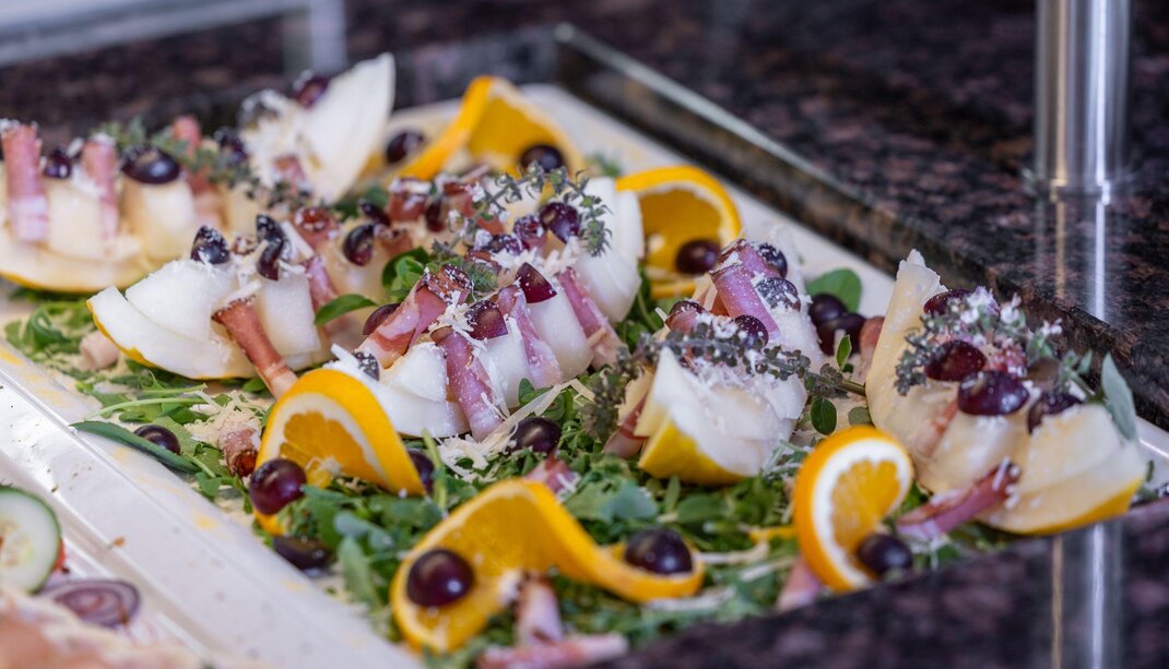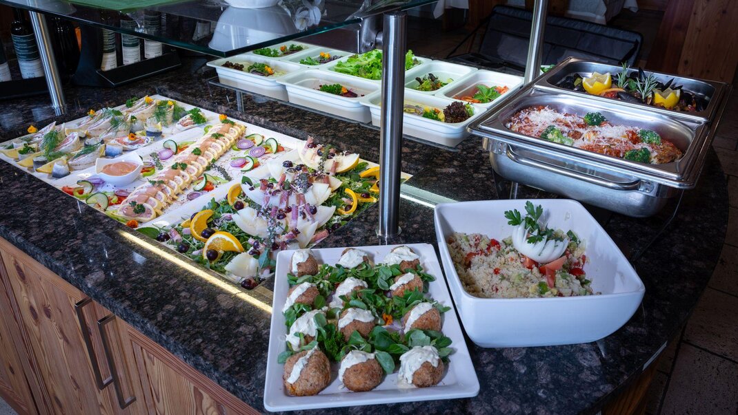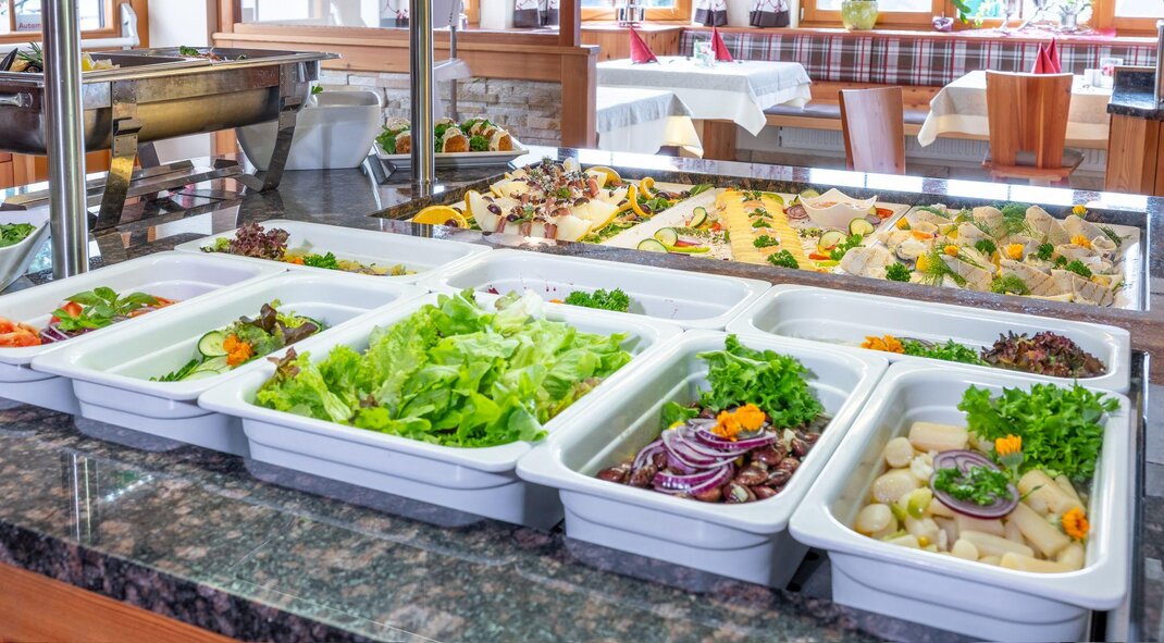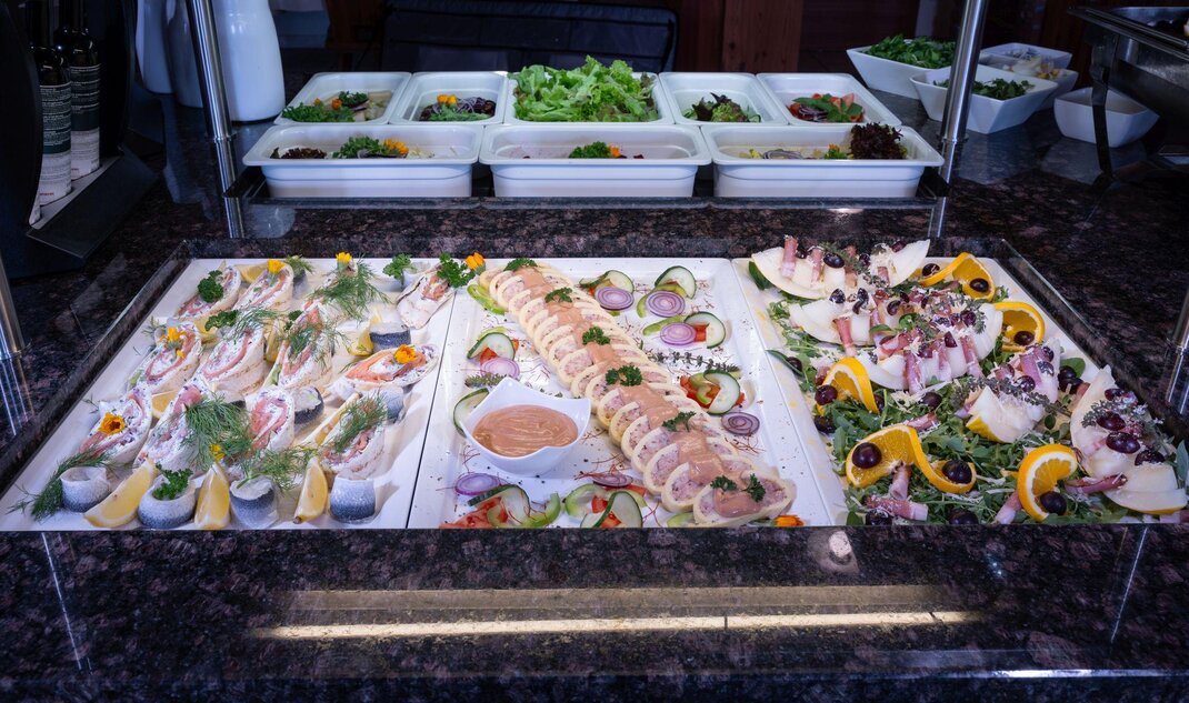 Appetizer buffet as well as crisp, fresh salads with tasty dressings and different vinegar-oil varieties