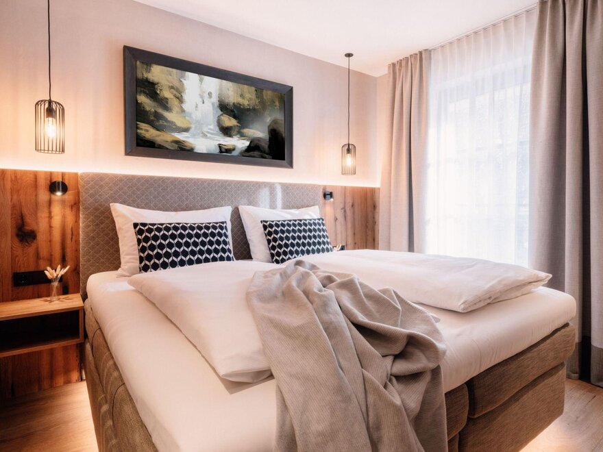 Pohodlný, alpský, městský. Pro všechny, kteří si přejí víc místa k relaxaci. Dva na dovolené v ZWEIklang. S uzavřenou koupelnou.
