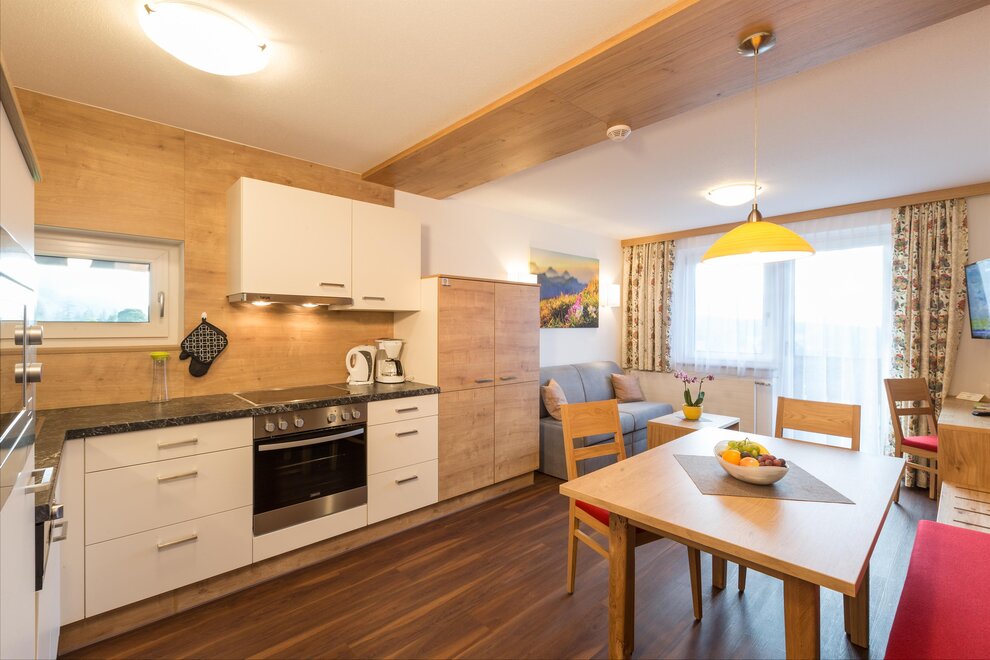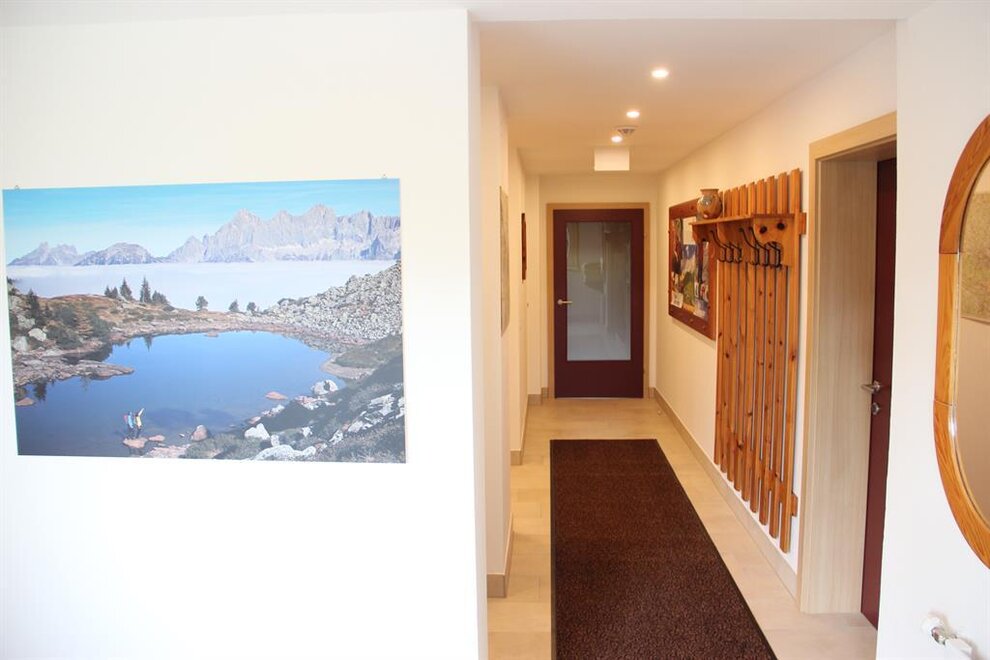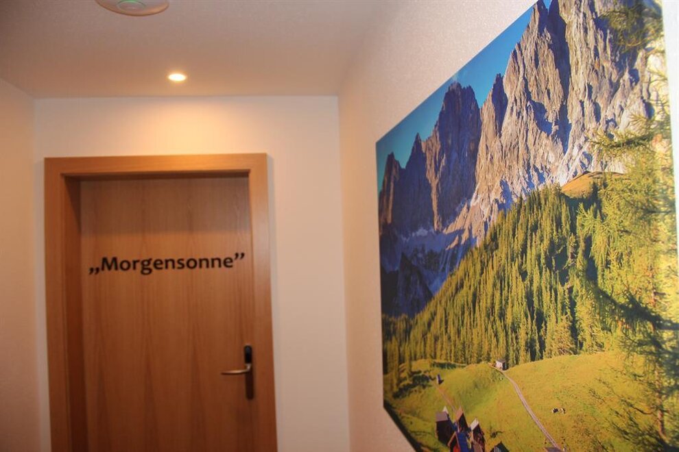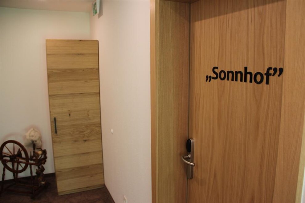 Naše apartmá "SONNHOF" nabízí s 73 m² odpočinek pro 4 - 6 osob. Dvě půvabné ložnice zajišťují klidné noci (jedna z nich s posuvnou postelí). Prostorná, také bezbariérová koupelna s bezbariérovým sprchovým koutem a WC. Kromě toho je k dispozici druhé WC v předsíni. Příjemné chvíle očekávají v útulném obývacím pokoji s jídelním koutem a plně vybavenou kuchyní – ideální pro společné vaření. Balkon s krásným výhledem na Dachstein. Standardní obsazení: 4 osoby, maximálně 6 osob (rozkládací pohovka)