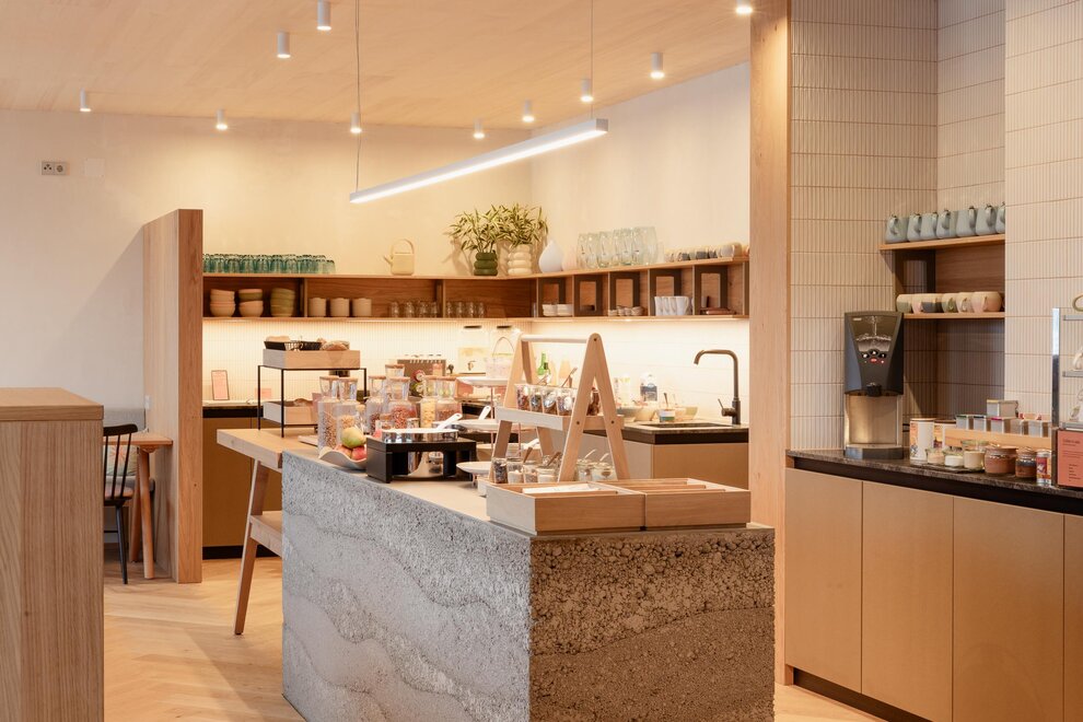 horách. Čistý design a jemné barvy, stejně jako udržitelné bytové doplňky, vytvářejí útulnou