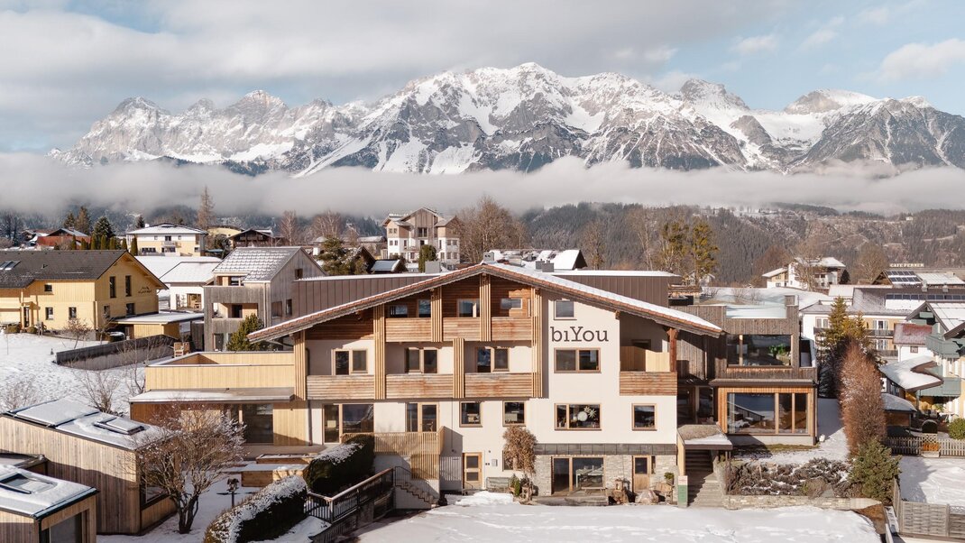 Software, to vše, co máme rádi, co naši hosté na nás oceňují, duše horského křišťálu zůstává. Hardware se obnovuje. A bude opravdu krásný. Z malého hotelu Bergkristall se stane ekologická čtvrť biYou. Ne opravdu větší, stále ve znamení udržitelnosti a bio-kvality. Těšte se na nové kategorie, jasný design a útulnou atmosféru, doplněnou o další seminární místnost pro jógu, pro vaše osobní Flow-momenty. Buď sám sebou. Užij si bio. Zažij jógu. Ahoj biYou. Nad Schladmingem, uprostřed horského světa, možnost lyžování až k domu. Samotní, s přáteli i rodinou. Všichni jsou vítáni!
