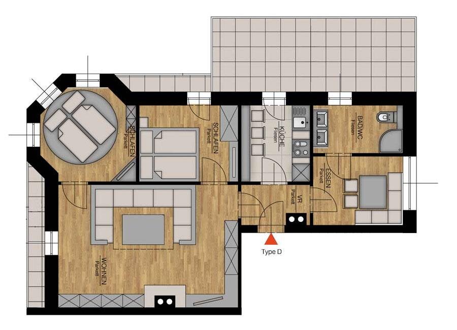 Our fully furnished apartments contain free W-lan, Flat-TV, SAT-TV, a free parking place, free heated ski-room and a welness area