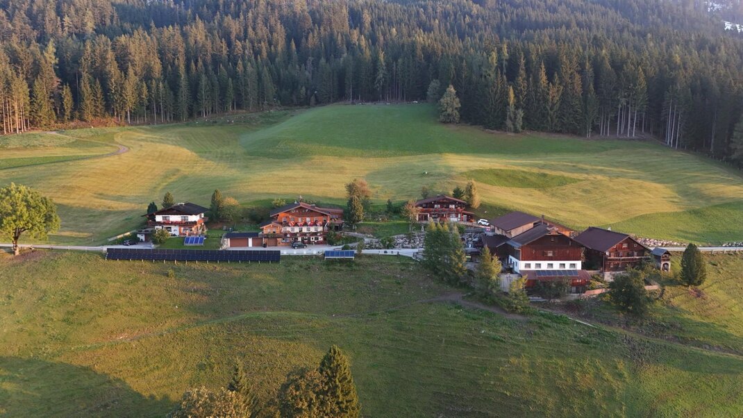 Apartment Bergblick ideal for 5-8 persons (about 100 m²): Entrance hall, living room with dining area and fully equipped kitchen - all dishes, electric stove with oven, dishwasher, fridge and freezer, coffee machine, kettle, microwave oven, satellite TV and radio. 3 bedrooms with double beds (if required cot and extra bed) and separate cozy wellness-living room (infrared sauna, shower, couch, LCD TV), bathroom with shower, bath and toilet, separate toilet. Great view from the balcony with covered, rustic sitting area.