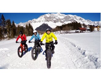 Ramsau am Dachstein bietet mit seinen vielen ständig präparierten Winterwanderrouten, Schlittenwegen und geräumten Forststraßen ideale Voraussetzungen auch im Winter mal aufs Fahrrad zu steigen.