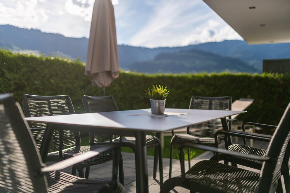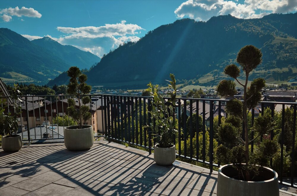 Das Penthouse mit großer Dackterrasse hat einen atemberaubenden Ausblick auf das Bergpanorama verspricht erholsame Urlaubstage.