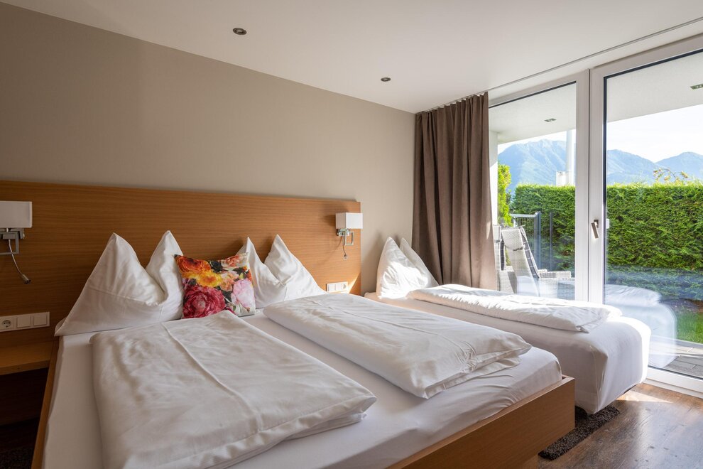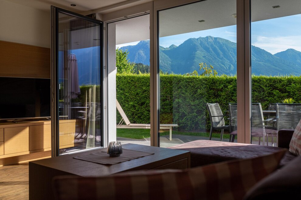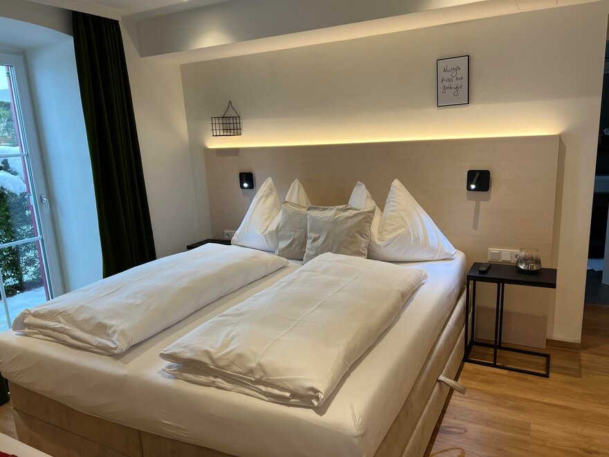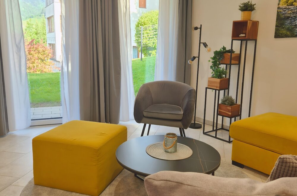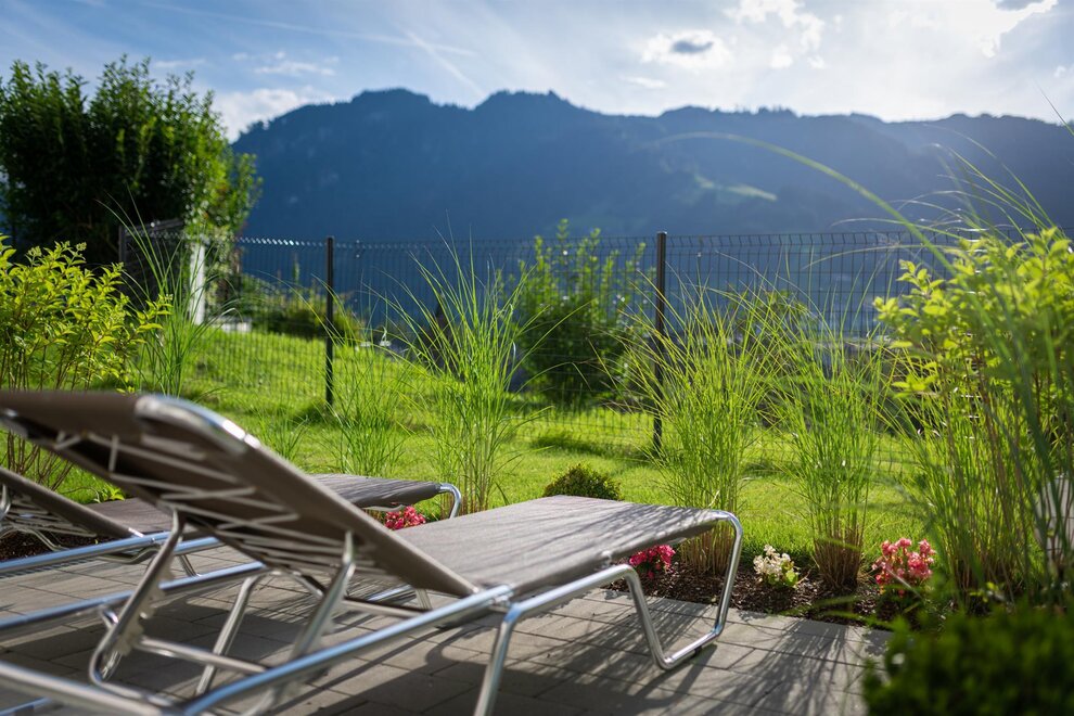 Das Appartement Premium Garden mit direktem Zugang zu unserem großen Garten verspricht erholsame Urlaubstage. Hier können Sie die Sonnenstunden auf der Terrasse in vollen Zügen genießen.