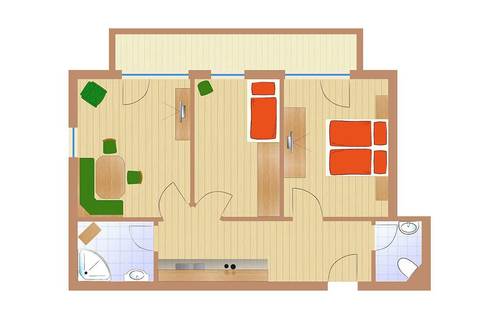 Größe 30 m² Belegung 1 - 2 Erwachsene , 0 - 2 Kinder Zimmer 2 Schlafzimmer 2 Zimmerdetails