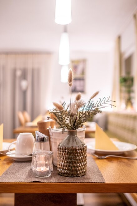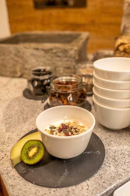 Mit einem reichhaltigen Frühstück in unserer Zirben Stube, steht einem guten Start in den Tag, nichts mehr im Wege.