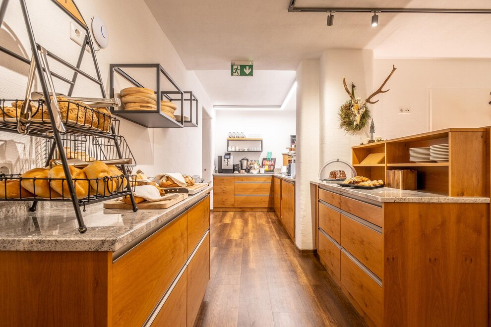 In unserer Zirben Stube erwartet Sie ein reichhaltiges Frühstücksbuffet.