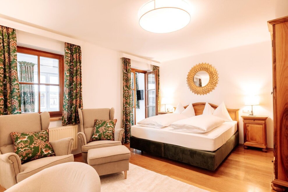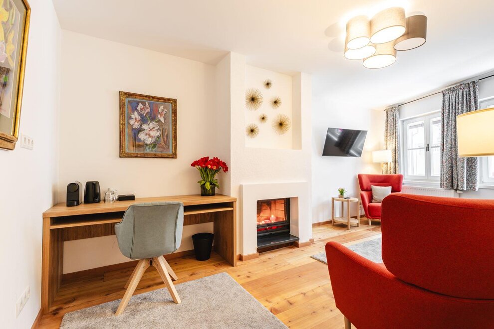 Balkon | separater Wohnbereich inkl. Schlafcouch | Boxspringbett | Holz- oder Parkettboden | Dusche oder Badewanne | separates WC | Handtücher vorhanden | Toilettenartikel | Haarföhn | TV | Schreibtisch | kostenloses WiFiAusstattung Zimmer/Appartement