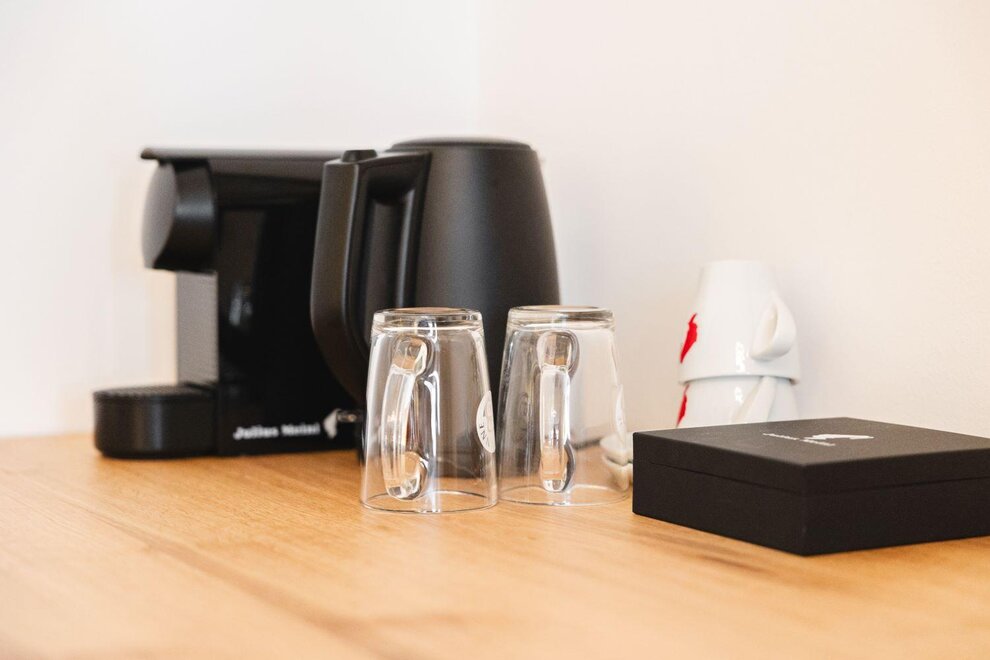 Kaffee-Maschine, Bademantel auf Wunsch, Wohn-/Schlafräume getrennt, WiFi, Haarföhn, Toilettenartikel, Moderne Möblierung, Separate Schlafzimmer: 0, Schreibtisch, Haustiere mit Rücksprache gestattet, Separater Wohnraum, Fernseher, Balkon, Balkonmöbel, Grundausstattung (Handtücher, Bettwäsche, Seife, Toilettenpapier), Fußende der Betten offen, Kabelfernsehen, Sitzgruppe