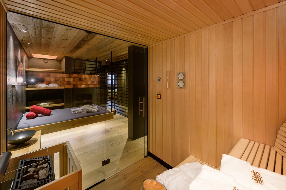- Eigene Sauna mit Sauna-Aufgussmittel und Öle