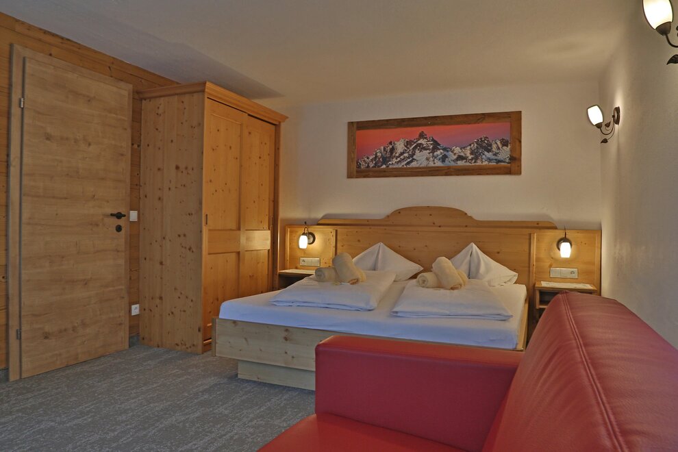 Alle Zimmer mit Dusche/WC, Fön, Kabel-TV, Telefon, Zimmersafe, teilweise mit Balkon mit herrlichem Blick auf die umliegende Bergwelt