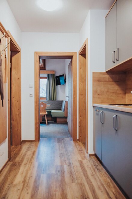 Familiensuite Hochkönig für bis zu 4 Personen, 45-55 m2, 2 getrennte Schlafzimmer , gemütlicher Wohnraum großem Tisch und Eckbank