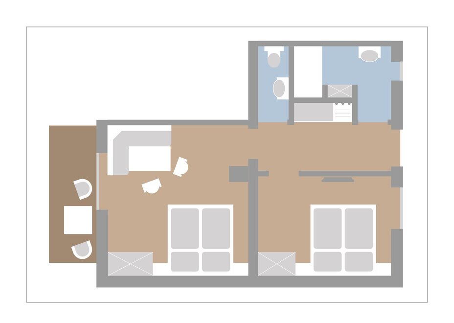 Größe 40 m² Belegung 2 - 4 Erwachsene , 0 - 2 Kinder Zimmer 2 Schlafzimmer 1 Zimmerdetails