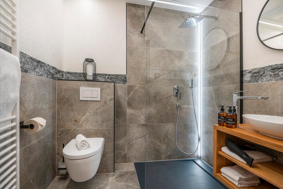 The new bathroom with shower/WC impresses with its timeless elegance.