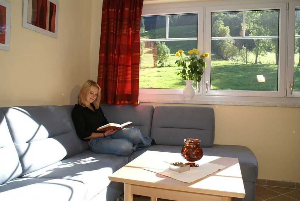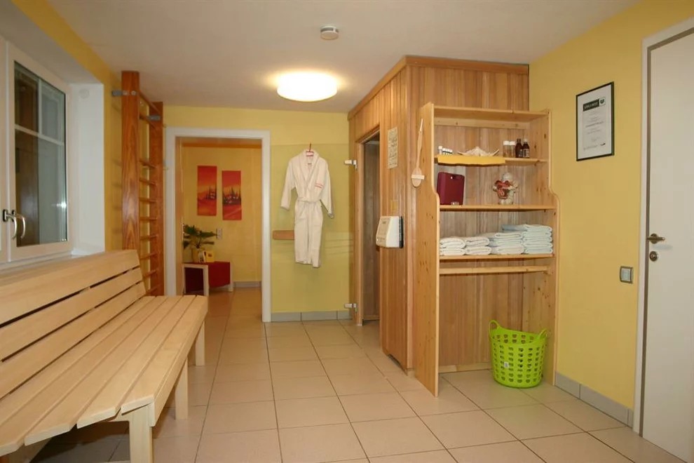 good as new room/apt., sauna, closet, desk, pets permitted on request, radio, kitchen, barrier free according to DIN, kettle, towels available, refrigerators available, central heating, iron, dryer, wheelchair accessible room/apt., kitchen and table linen, toaster, dish sink, DVD player, electric stove, garden furniture, oven, Größe m²: 70, internet connection available, furniture suite, island kitchen, balcony furniture, terrace, dishes available, store room, refrigerator, coffeemaker, bathrobe, WiFi, vent hood, meadow, garden, dishwasher, low-noise room/apart., separate bedroom/s: 2, modern furnishing, satellite TV, microwave, TV, room/apt. with disabled access, washing machine, stereo system, separate bedroom/living room, hairdryer, CD player, maximum no. of pets: 1, bed linen available, living room, open plan kitchen/living room, non-smoking room/apt., combined bedroom/living room, safe, no carpet