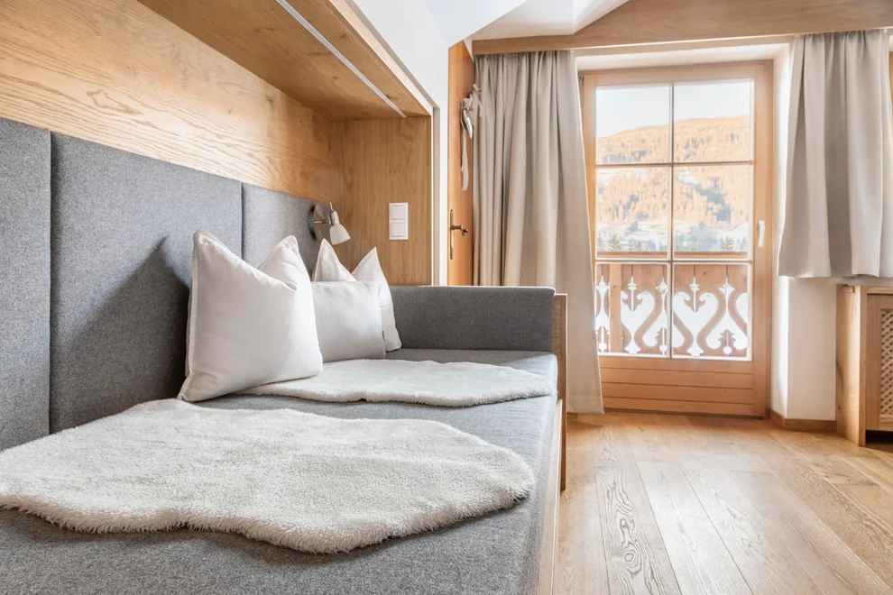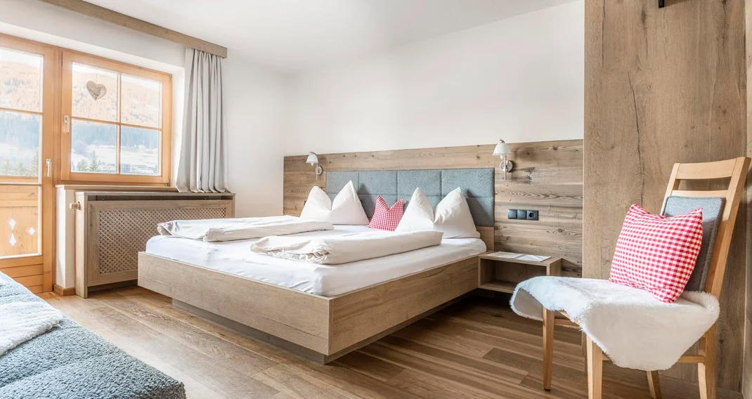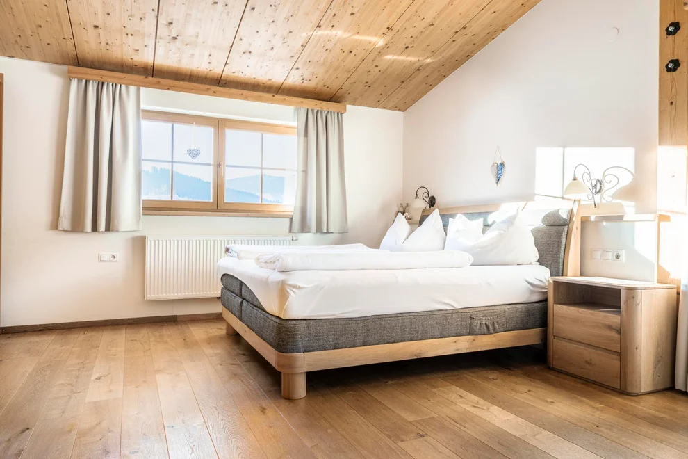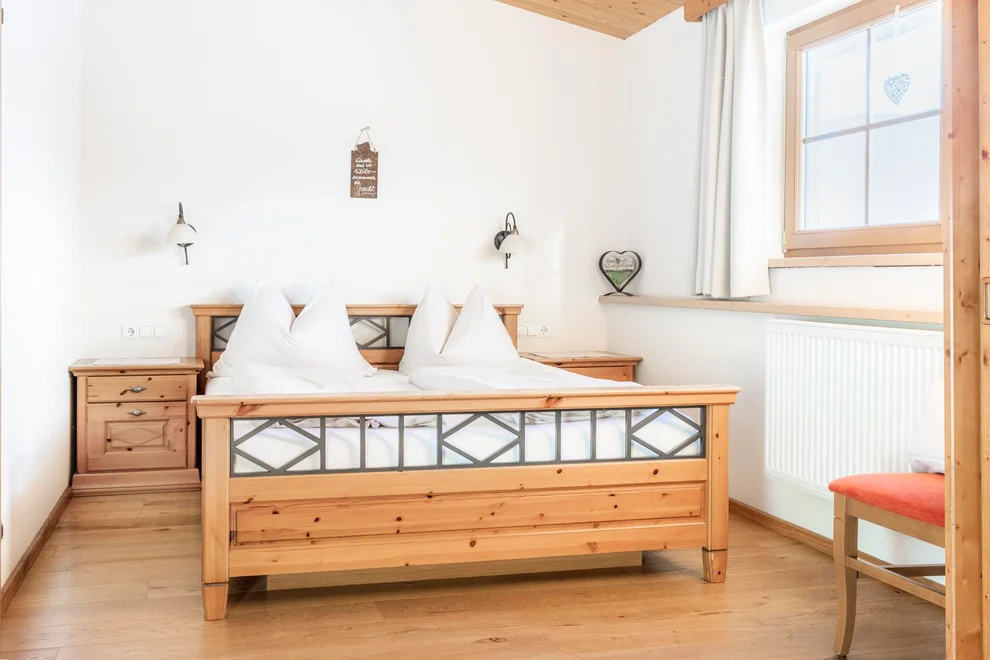 The cozy double room in country house style with mountain views invites you to relax.
