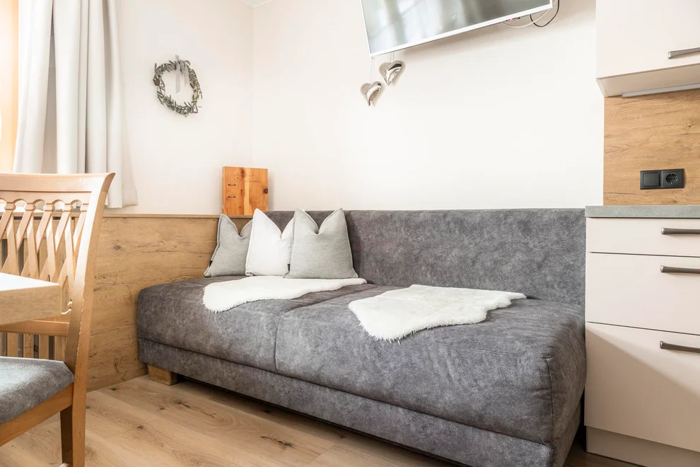 The "Flachau" apartment includes a fully equipped kitchen-living area with one bedroom and bathroom as well as an infrared cabin. Enjoy the view of the Dachstein massif from the balcony!