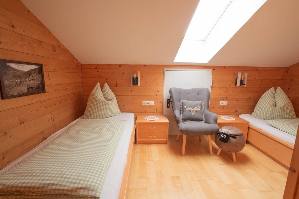 - a room with 2 single beds in the attic