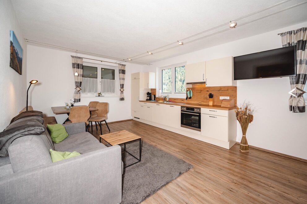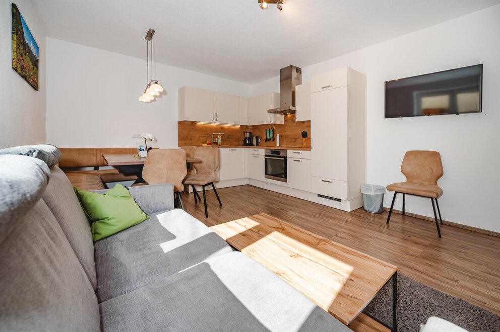 Our appartment "SMALL" offers full comfort for 2 to 4 people. Equipped is the modern and cozy apartment with 1 separate bedroom, 1 bathroom, 1 separate toilet, living and dining area with fully equipped kitchen and sofa bed for 2 more people. Of course, you'll find FREE WIFI and TV. A private cozy terrace leads directly onto the ski slope.