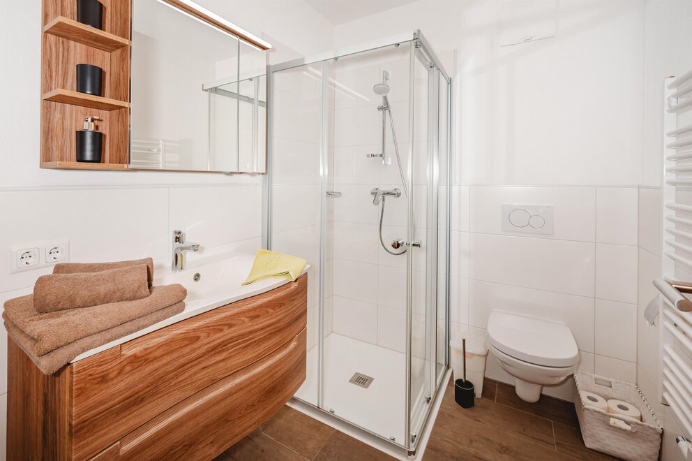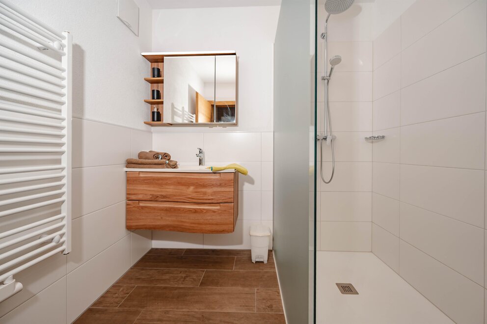 Our appartment "LARGE" offers full comfort for up to 8 people. The modern and cozy apartment is equipped with 3 separate bedrooms, 2 bathrooms (one of them with WC integrated), 1 separate toilet, living and dining area with fully equipped kitchen and sofa bed for further 2 persons.