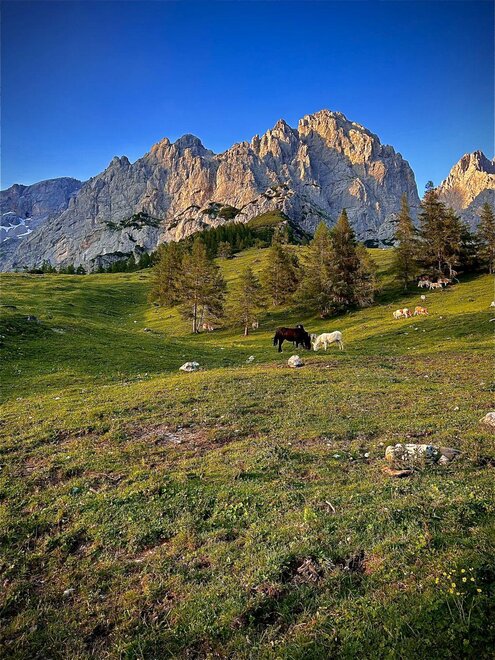 A warm welcome to the hotel Berghotel Türlwandhütte, situated right at the foot of the Dachstein. Active nature lovers who like to be a bit “above things”, find a great offer up here, at the Alpine pastures: romantic sunsets, a creative and rustic cuisine, trips up to the Dachstein glacier, and much more. “Experience the world around the Dachstein mountains!”