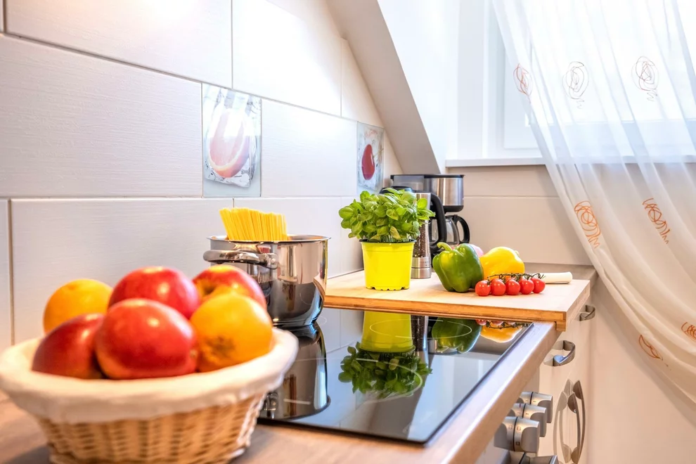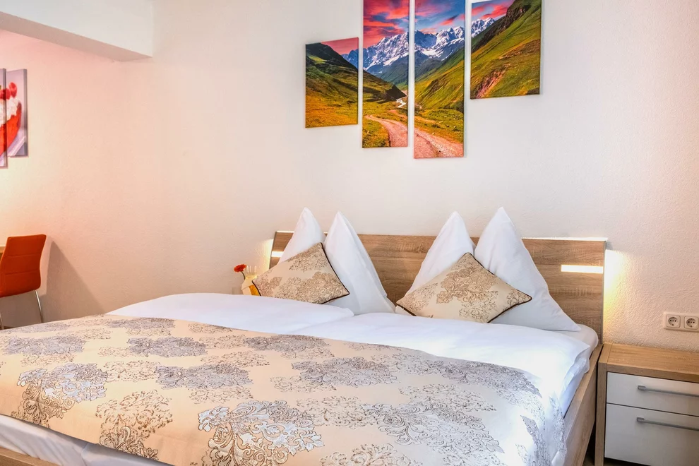 The apartment TOP 4 is located on the 1st floor and features a king-size double bed, a fully equipped kitchen with all the cooking utensils (incl. microwave, oven, kettle, filter-coffee machine), an own bathroom with a shower cabin, heated towel dryer and hair dryer.