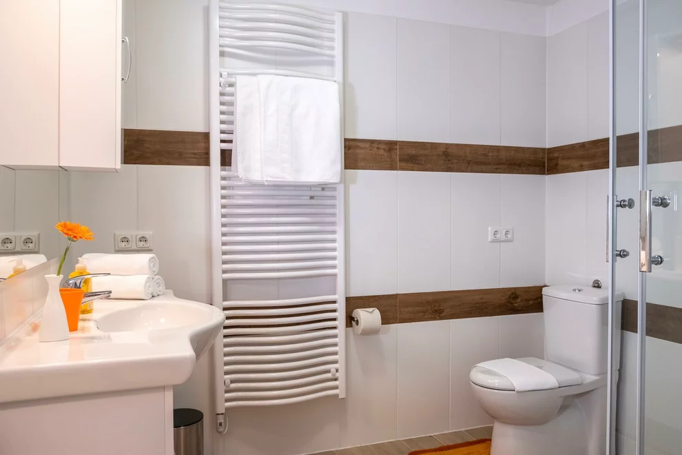 shower, toilet, toilet, shower, separate toilet, running hot/cold water