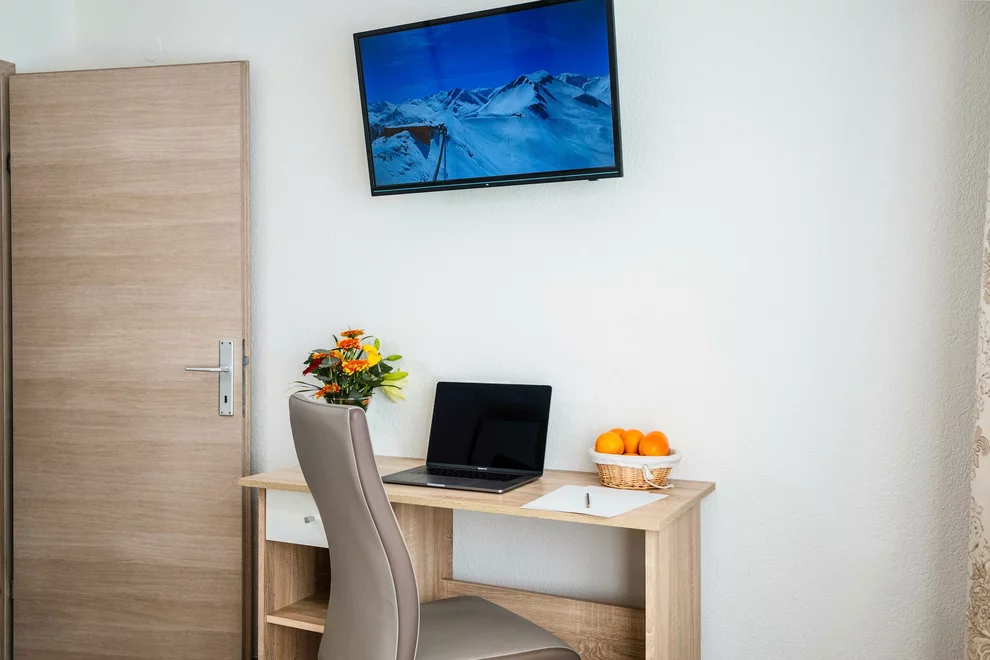 Our private parking in front of the house is available for free. On the ground floor you will find a ski room with heated ski boot dryer and storage space for your sports equipment, the room is also suitable for bicycles in summer and has a charging point for e-bikes.Room/apartment features