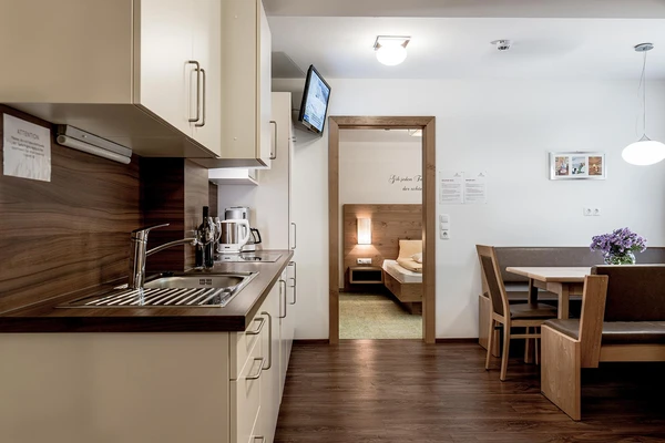 Apartment for 2-4 persons with approx. 40 sqm. The Comfort apartment is equipped with 1 sleeping room with a kingsize-bed an additional sleeping-couch for 1-2 persons, 1 bathroom with shower and toilet, living-kitchen-area with dining area and a completely equipped kitchen (ceramic glass cooktop, microwave, fridge with icebox, coffee mashine, dishwasher and also cooking utensils and tableware). All apartments and rooms have a TV, safe, WIFI Internet and a hairdryer at one´s disposal.