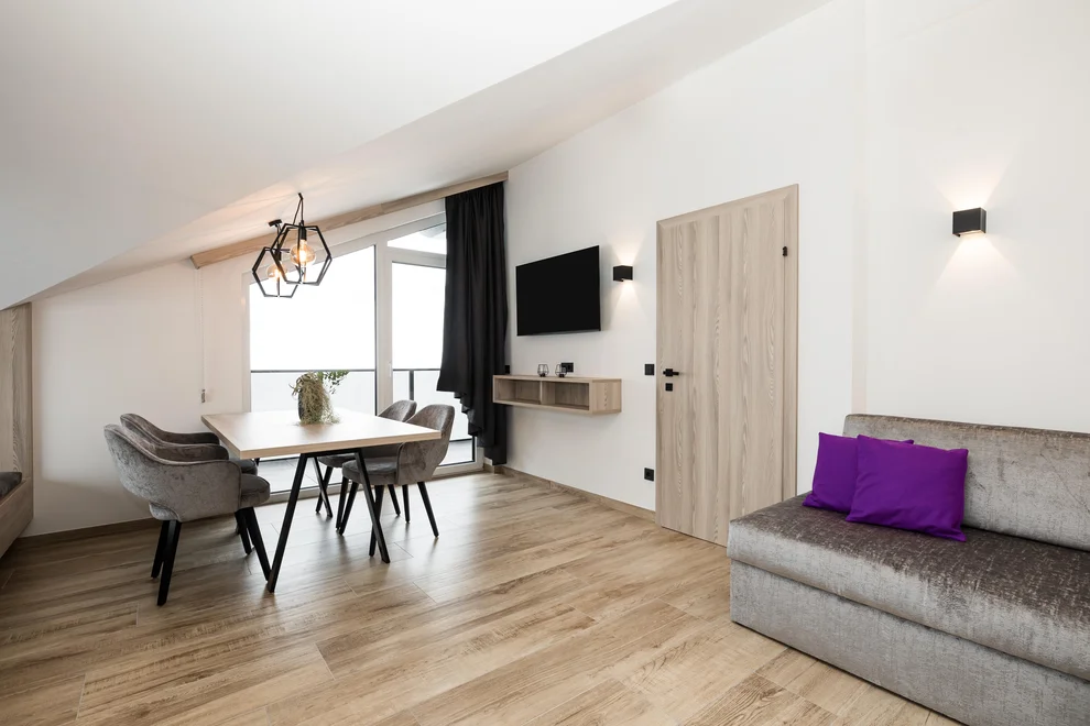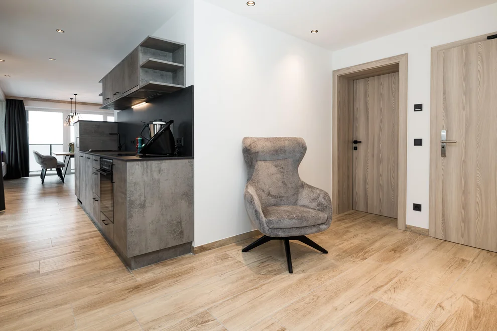Our 6 alpine modern apartments offer direct access to the ski slope, an in-house elevator and a private sauna in each apartment and enjoy a fully equipped kitchen including Thermomix.