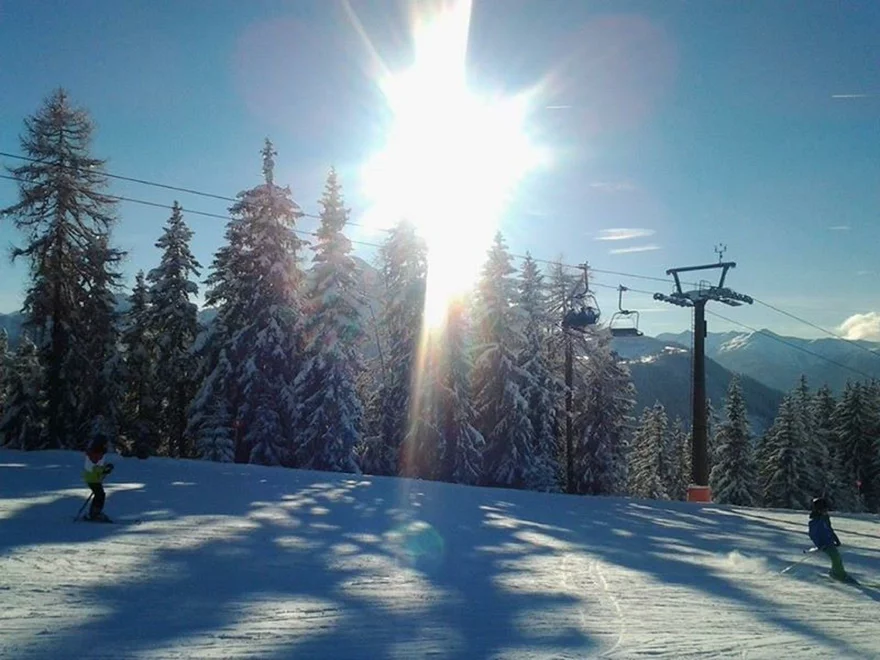You are in winter directly by the cross country slopes, in the Skiamade, in summer in a green valley near a wood.