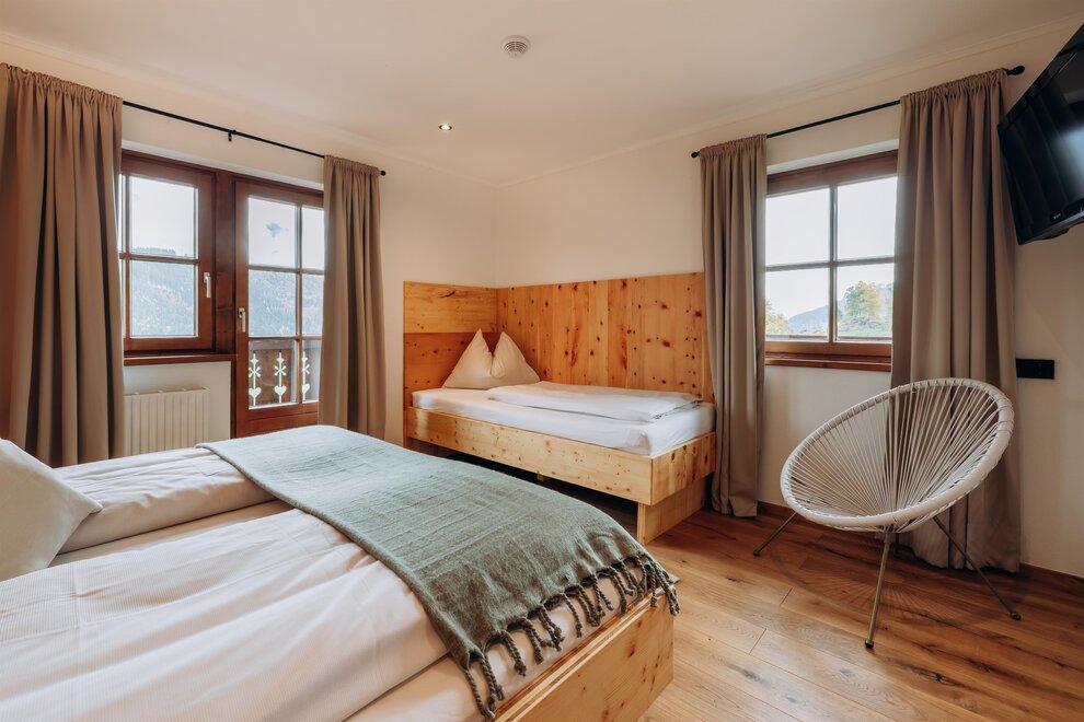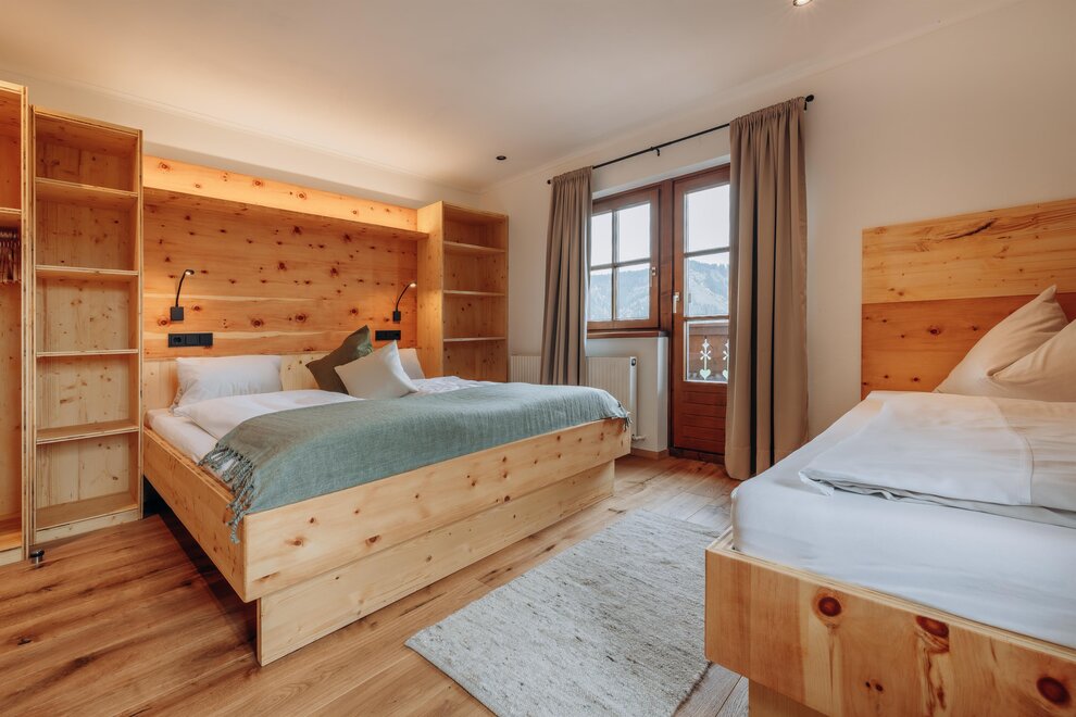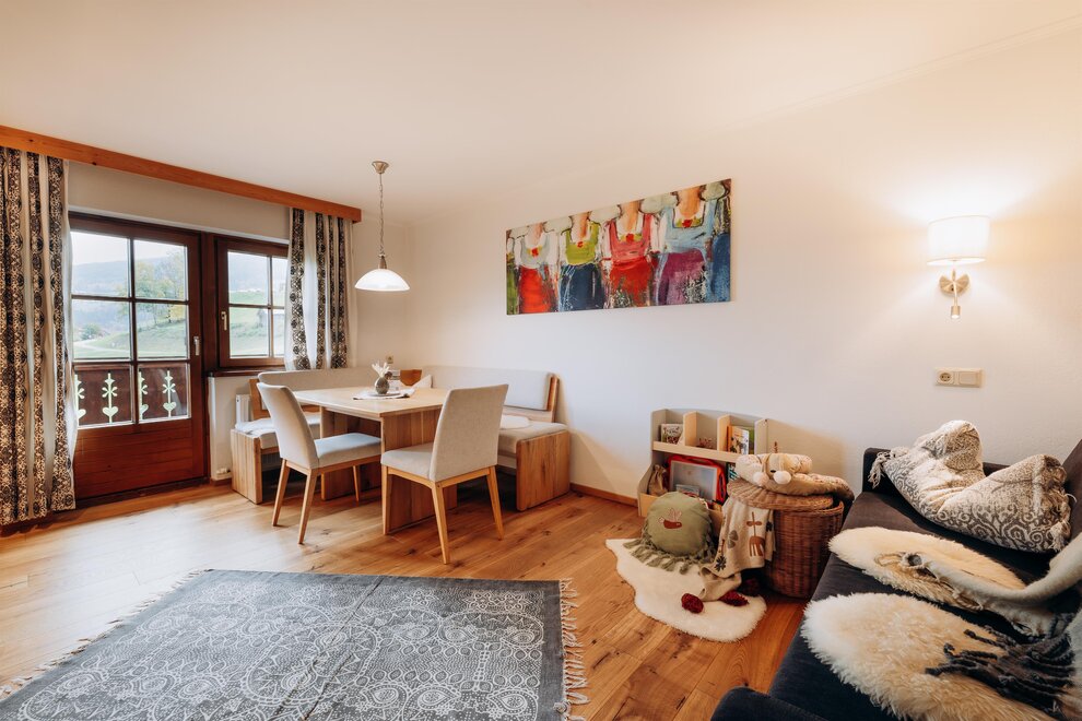 Here at the Hoferhof you stay in lovingly furnished double rooms - equipped with a sitting area, bathroom with shower and WC, hairdryer, balcony or terrace, cable TV and free Wi-Fi. You also have the choice of staying in one of our apartments, which also have two separate bedrooms and a fully equipped kitchen-cum-living room. Culinary we spoil you with a hearty breakfast buffet with organic products. This makes every day the perfect vacation experience!