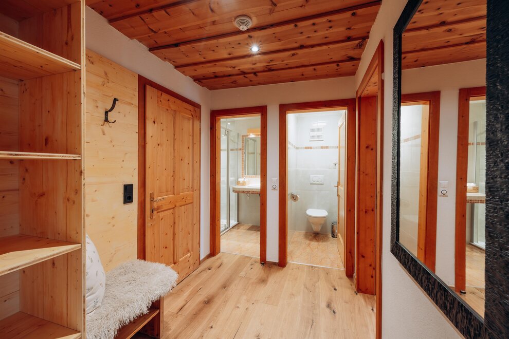 Stay in a cosy bedroom with high quality solid wood furniture and you will be enchanted by the panoramic view of the Dachstein mountains.