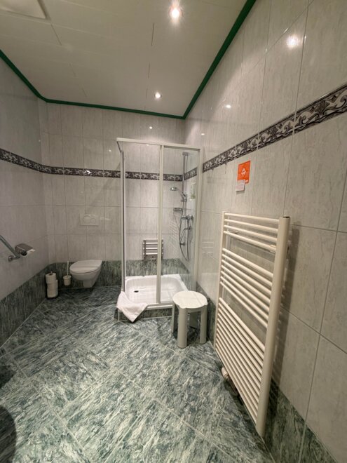 Bathroom with shower and seperate toilet