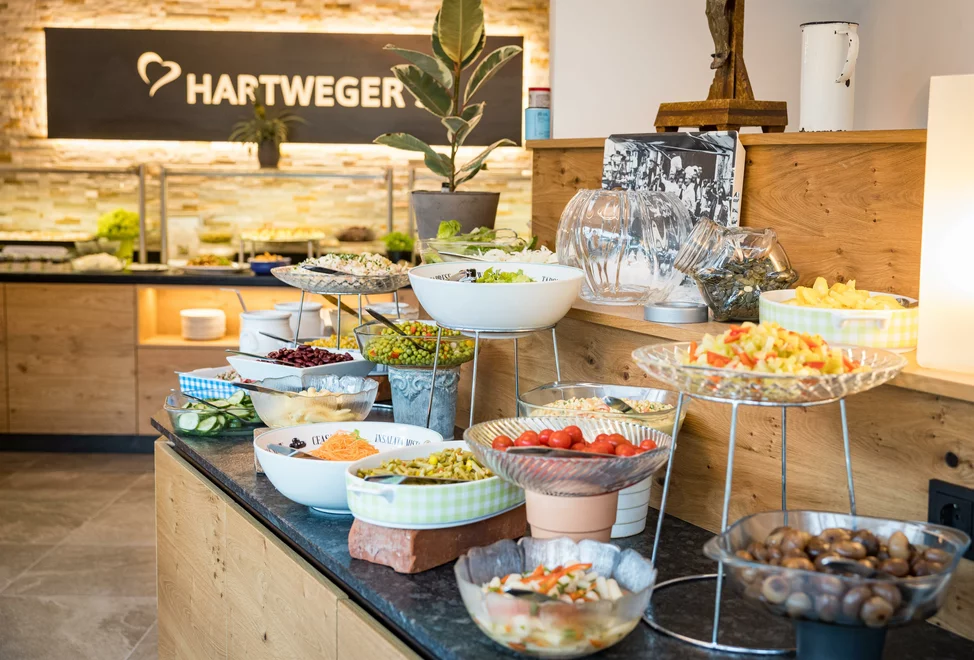 Fresh products and regional ingredients are particularly important to the Hartweger family. In the hotel’s own restaurant, guests will be indulged with regional delicacies and Austrian specialties throughout the day. The healthy aspect of food preparation also plays a significant role. Guests with allergies or special dietary habits are in the best hands with the Hartweger family. Homemade products, such as jams and gingerbread, complement the culinary offerings.