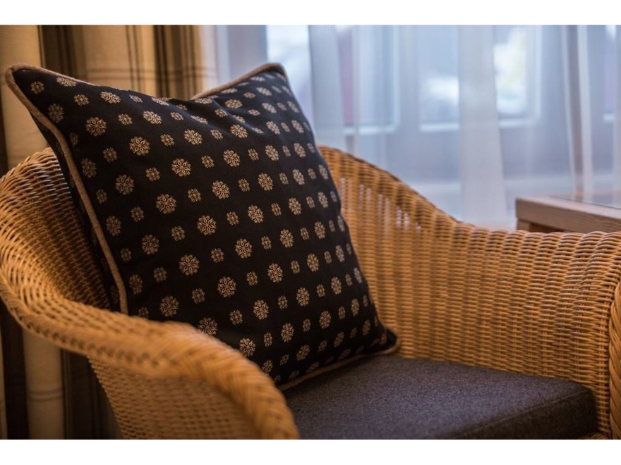 Comfortably furnished double room with seating area,