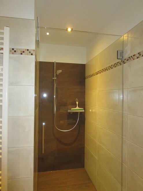 Bathroomm with shower and toilet, entrance hall.